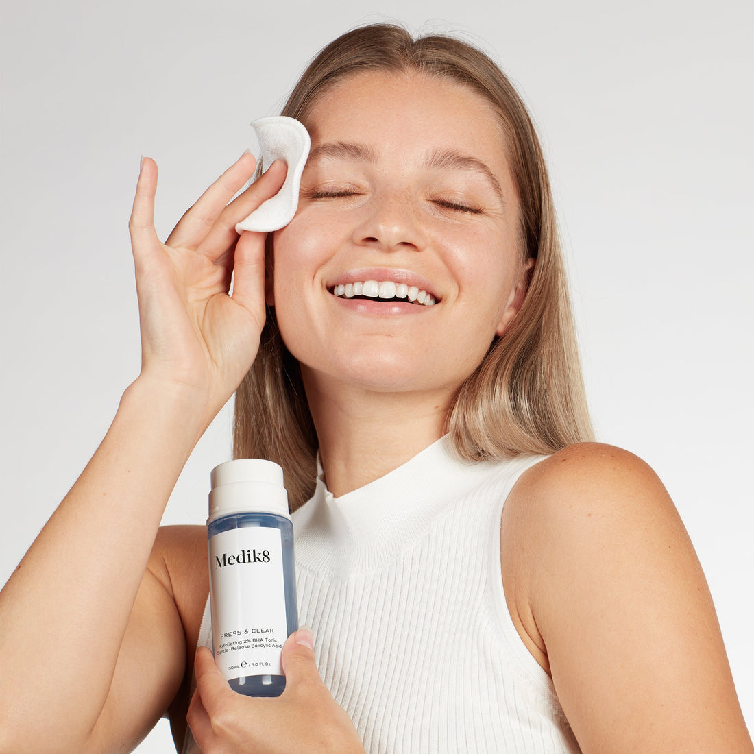 Samozrejme, v Medik8 radi prekonávame bariéry – ale rozhodne nie pokiaľ ide o našu pleť. Preto sme pristúpili k inovatívnemu prístupu pri formulovaní produktu Press & Clear, pričom sme si uvedomili, že pleť náchylná na nedokonalosti je citlivá pleť – a mala by byť preto ošetrovaná ako taká, aby dosiahla čo najlepšie dlhodobé výsledky. Press & Clear tiež vyvracia bežný mýtus, že kyselina salicylová musí mať nízke pH, aby bola účinná na pokožke, pretože naše výskumy ukazujú, že je rovnako efektívna pri exfoliácii a dekongestii aj pri neutrálnejšom pH ~5,5. Predstavujeme: Press & Clear.