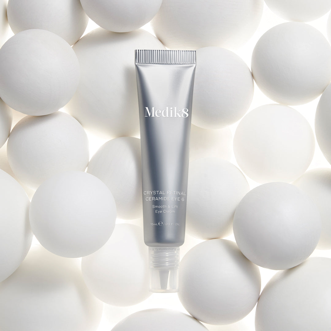 Crystal Retinal Ceramide Eye tiež predstavuje novú inovatívnu zložku v repertoári zložiek Medik8; kyselinu hyalurónovú v napučaných guľôčkach, ktorá je nevyhnutná pre rýchle viditeľné výsledky krému. Sú to typ kyseliny hyalurónovej, tvorené dehydrovanými guľôčkami, ktoré sa môžu zväčšiť, keď sú hydratované, a nafukujú sa pod povrchom pokožky, čím viditeľne vyplňujú a vyhladzujú jemné vrásky a linky. Po použití zostáva pleť viditeľne plnšia, mladistvejšia a hydratovaná ráno.